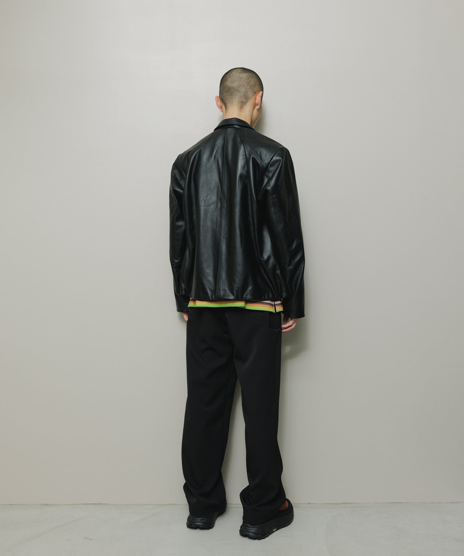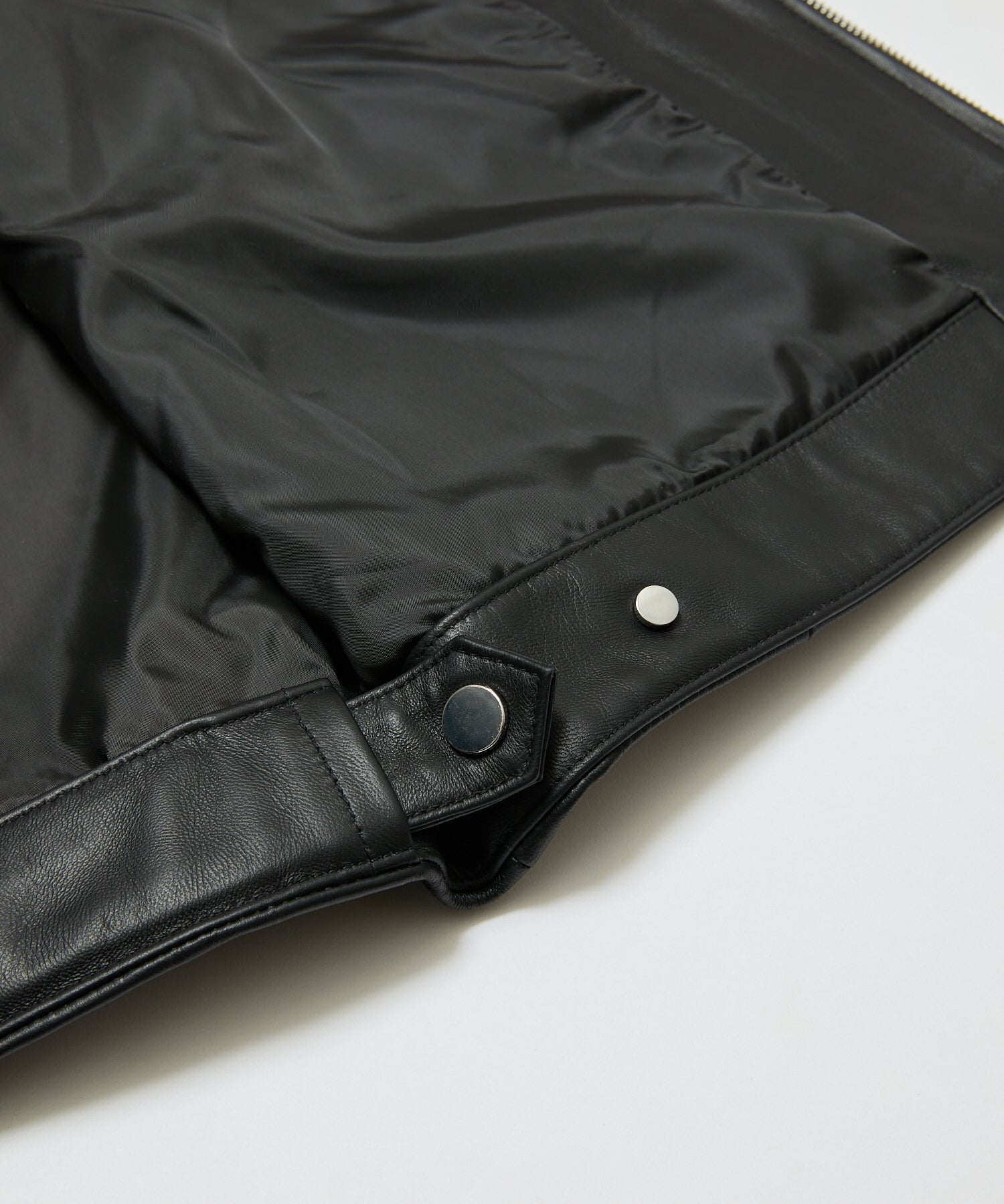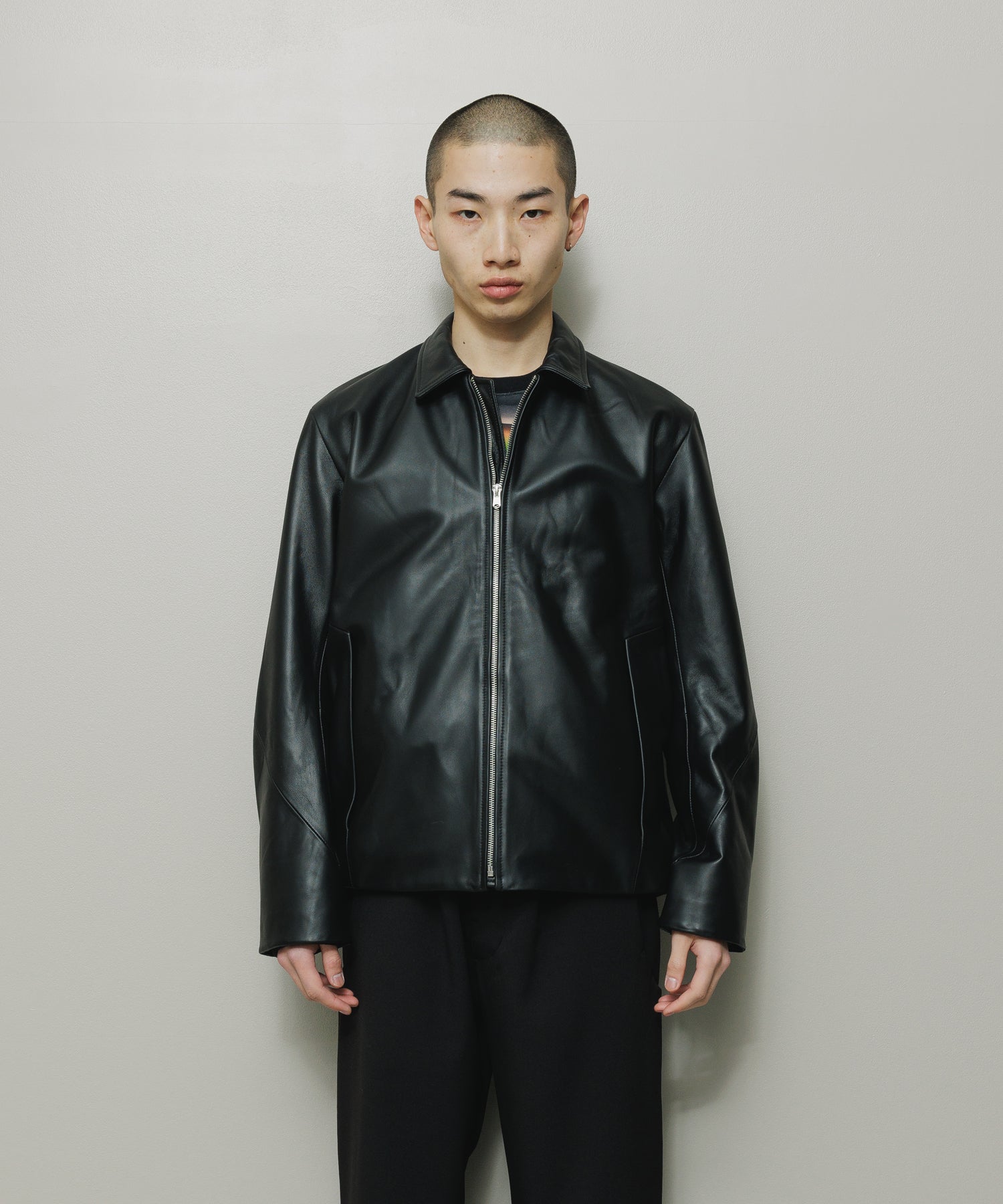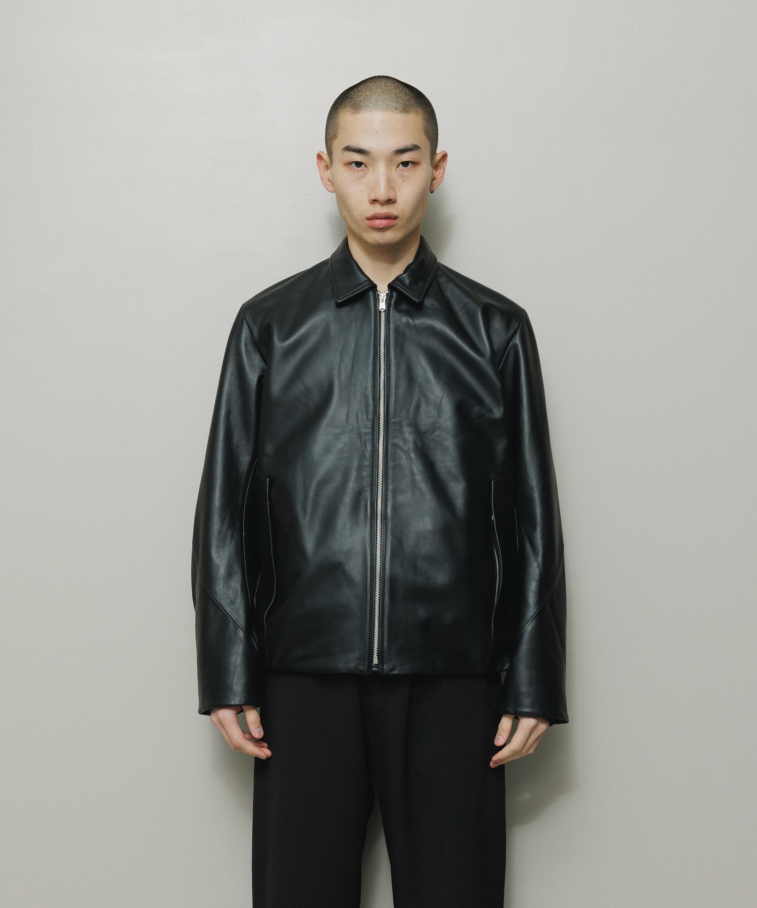 ラムレザーを使用したレザーブルゾン・動きを考慮したテクニカルなパターンと切り替え。
