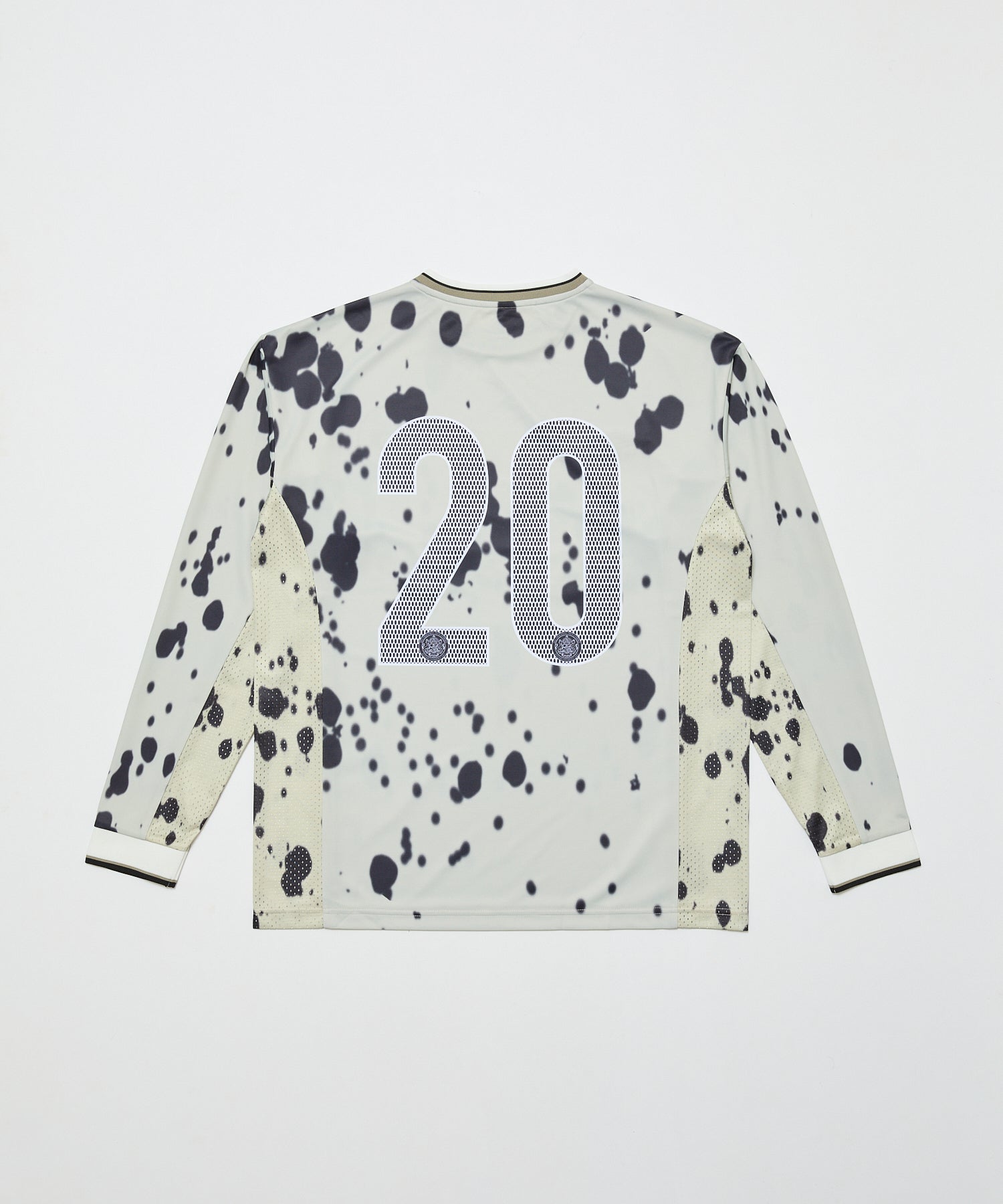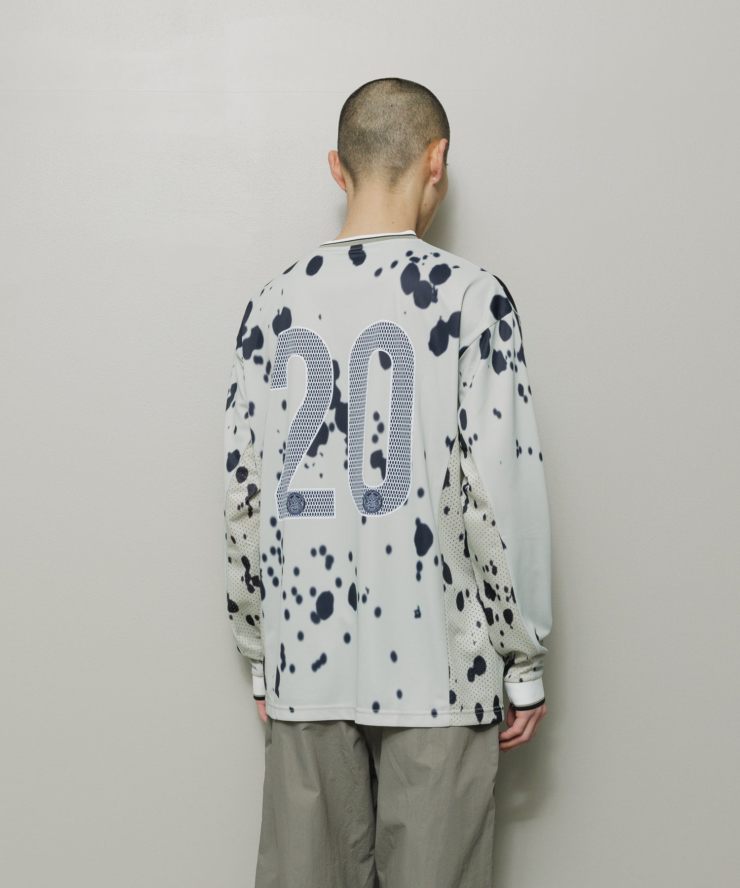 ロングスリーブ。オリジナルグラフィックプリントテキスタイルとナンバリングプリント。吸水速乾機能のポリエステル素材。