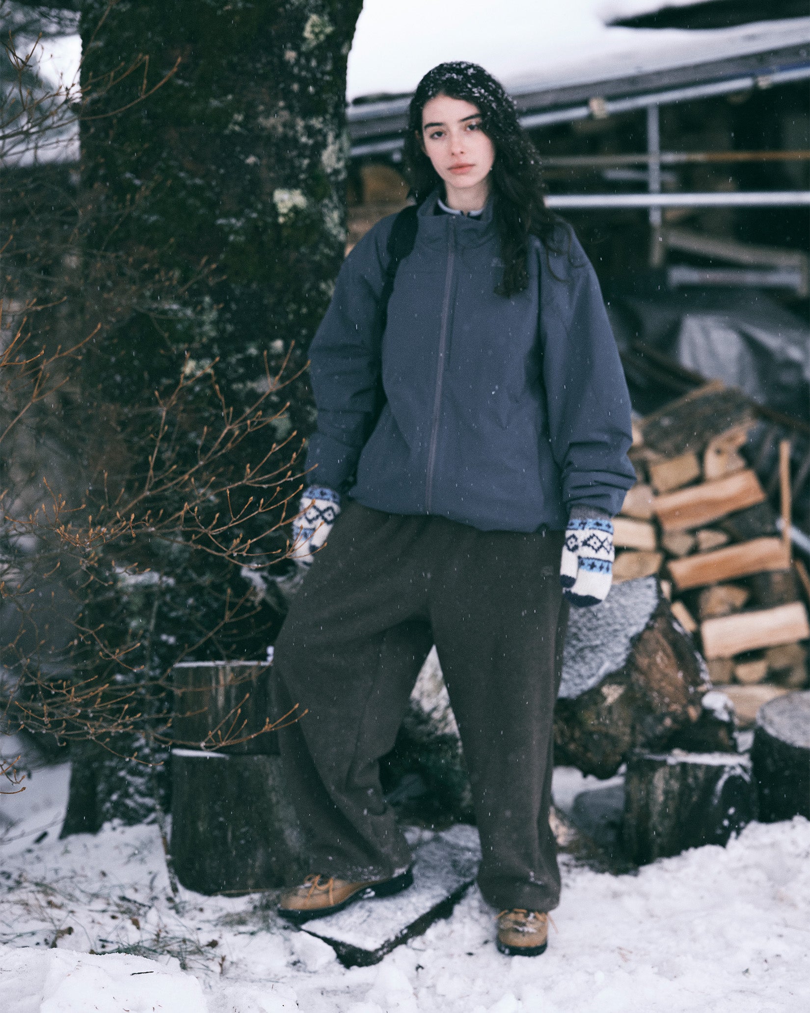 あったかそうな太番手のウールで、裏地にはフリースが付きます。