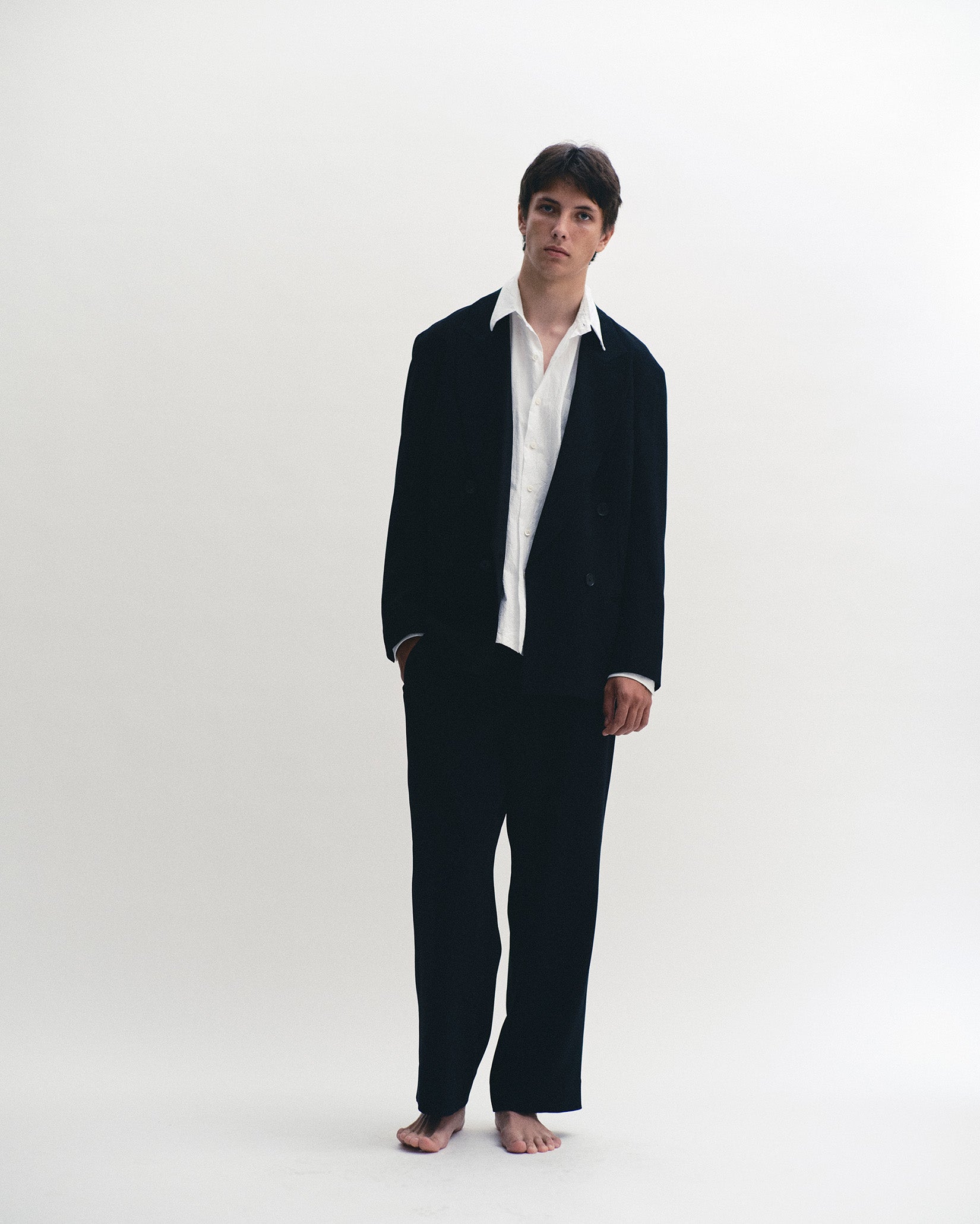 押さえるべきはなんといってもゆったりとしたスーツのパンツとしてのドレープ感。