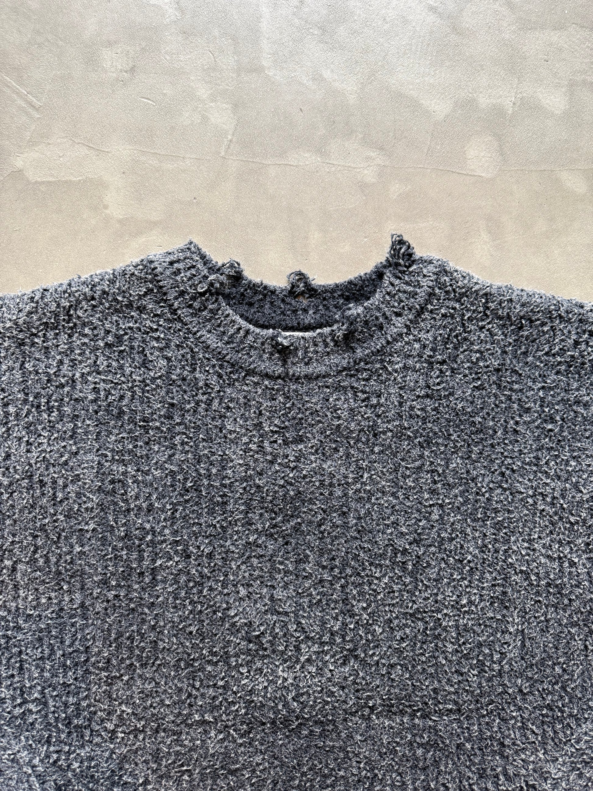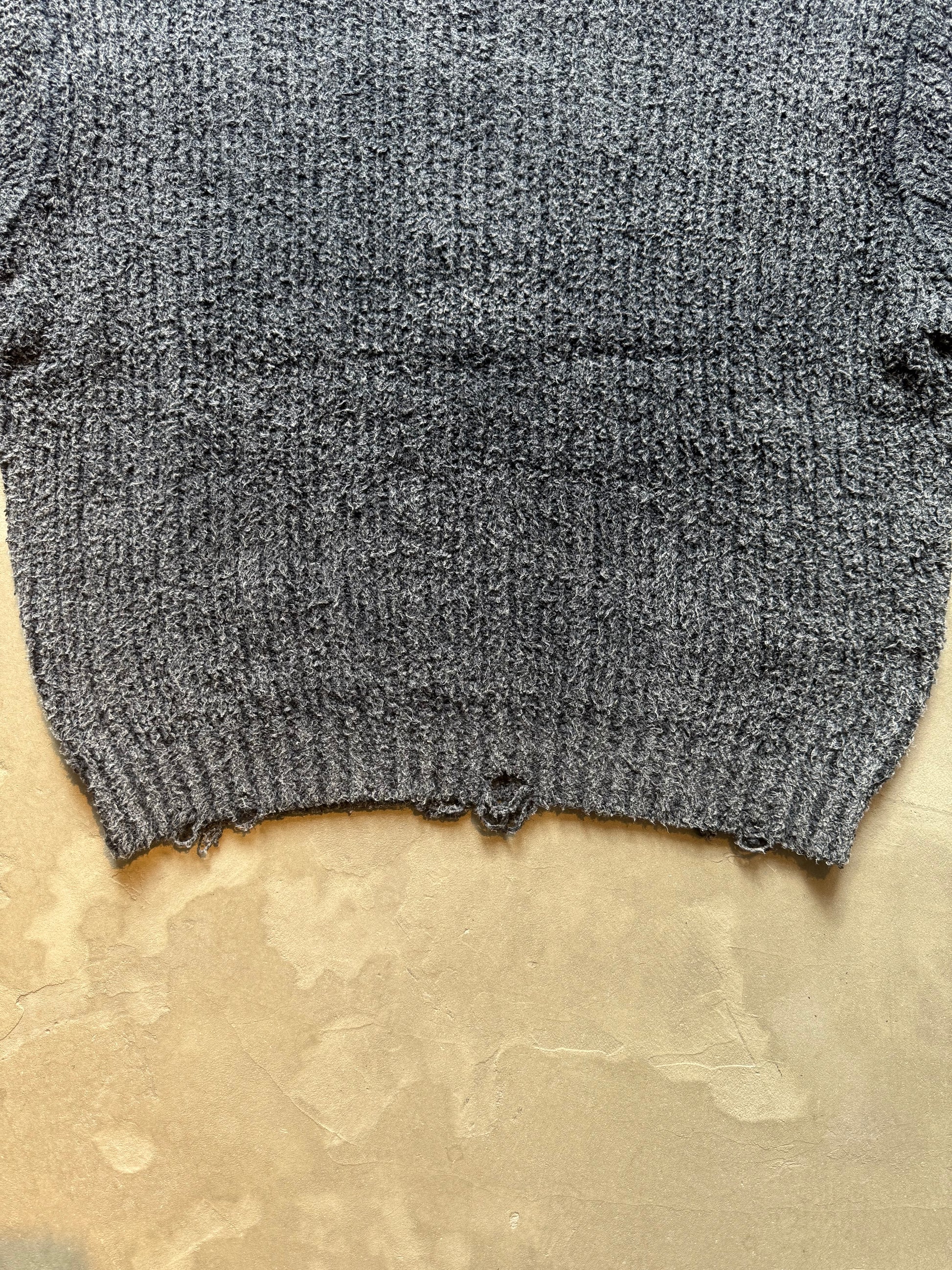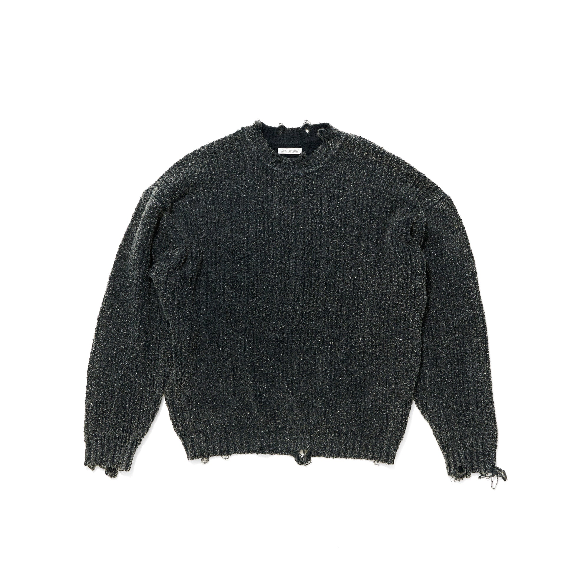 生地を編む段階でダメージ加工を施し、製品を染め上げた後に更に洗いをかけることでユーズド感を出しつつも高級感のある1着に仕上げております。