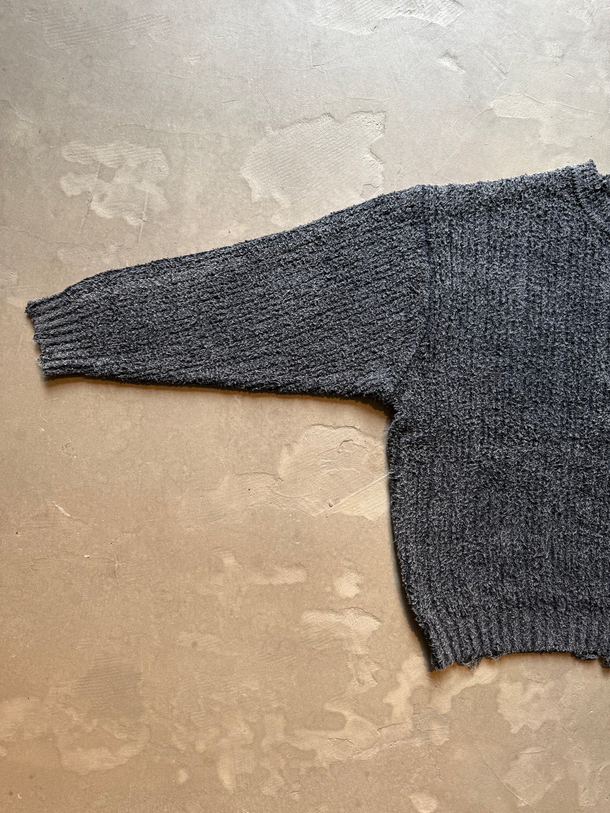 コットン素材を使用し、加工を施したクルーネックニットになります。