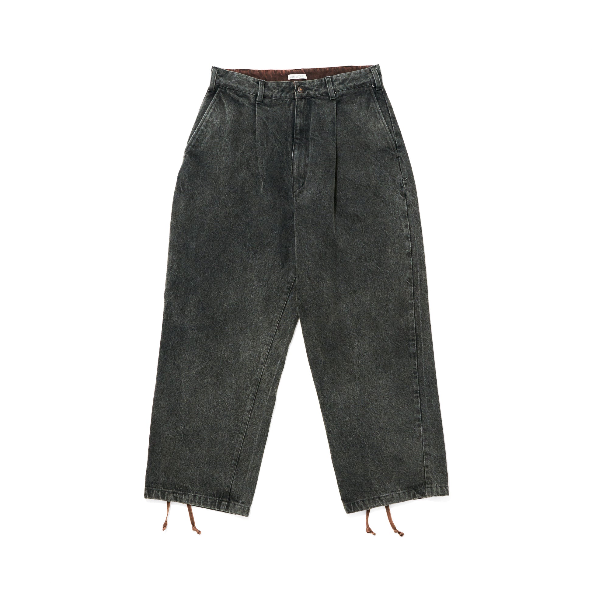 製品後にバイオ加工と特殊加工を施したデニム生地のワイドパンツになります