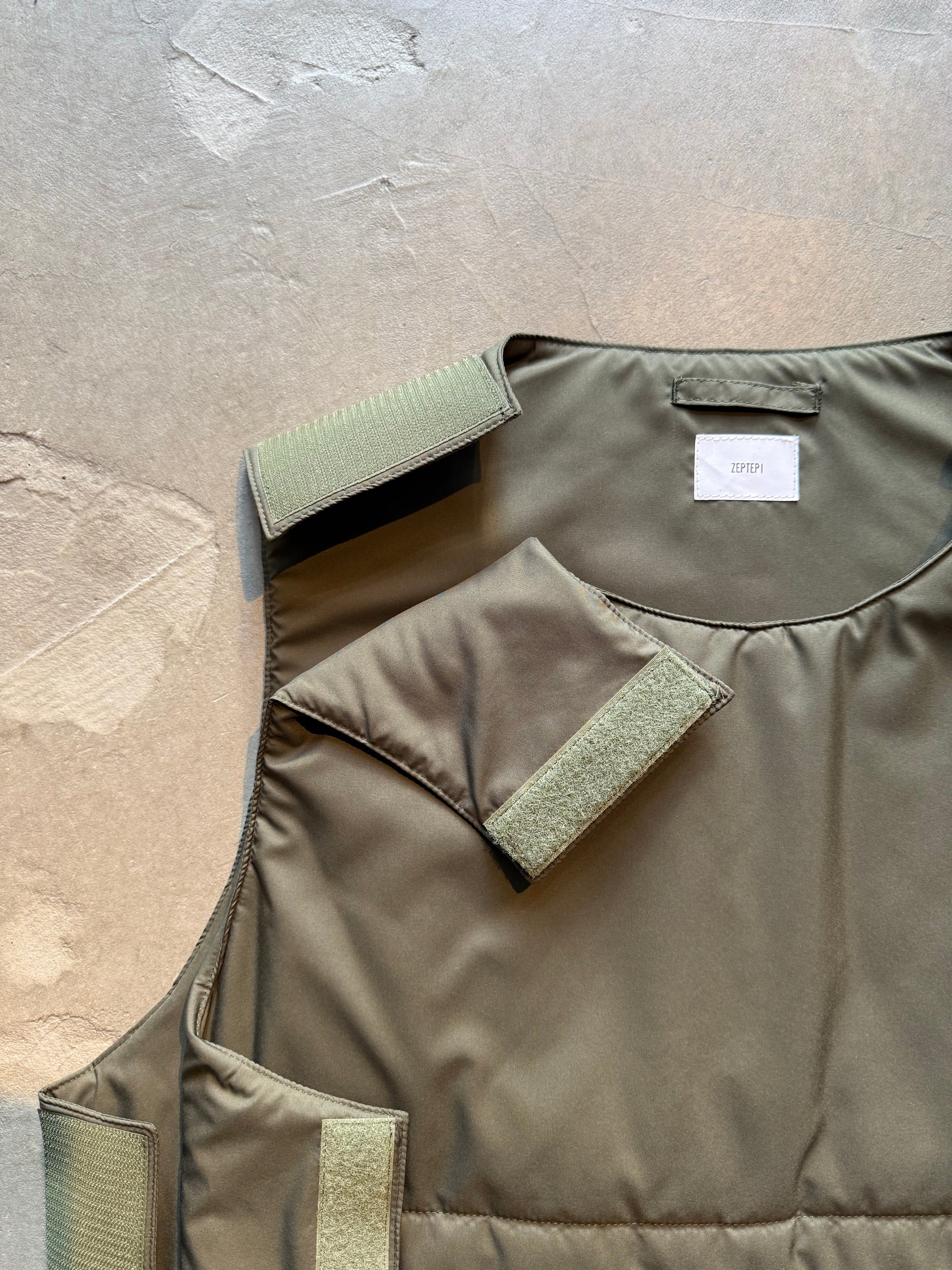 前身、後身の2枚の構成となっていて、両肩部分、両脇部分をマジックテープでくっつけています。